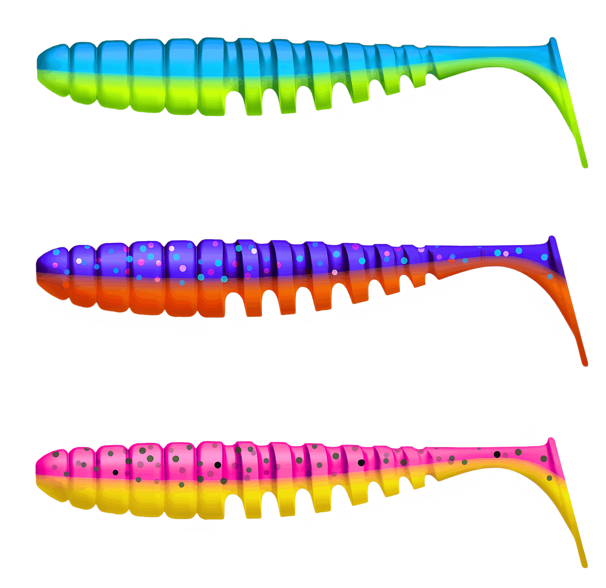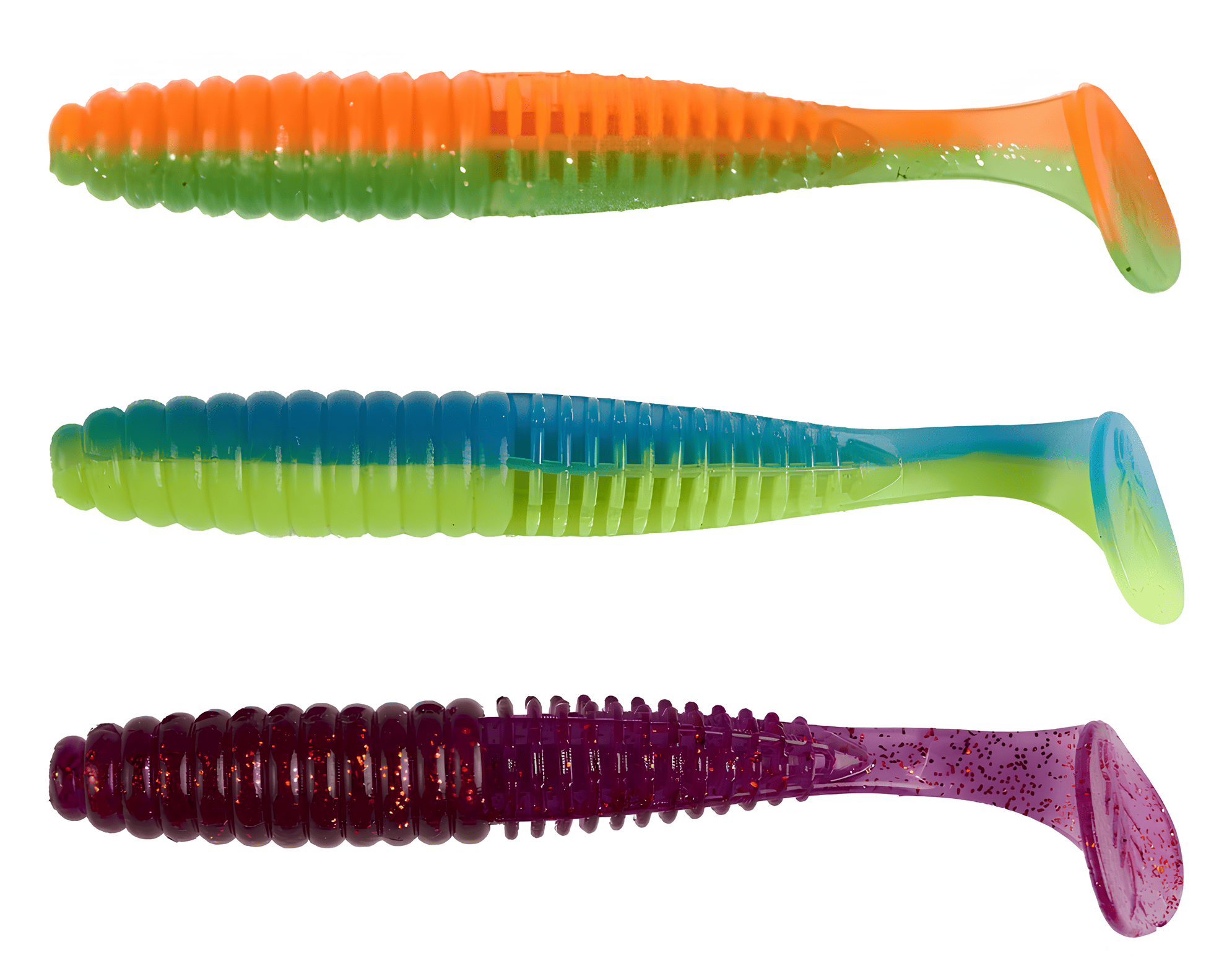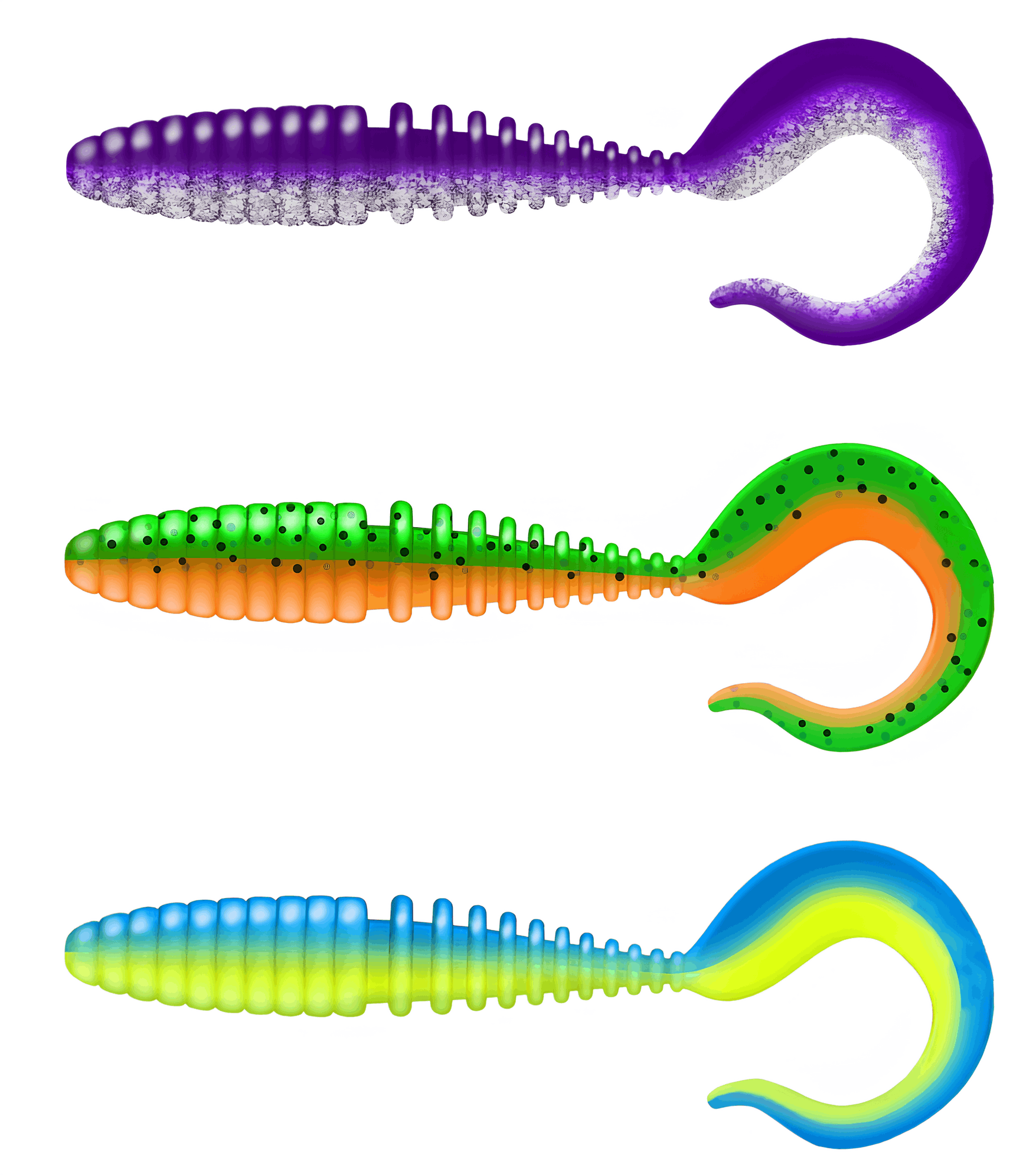 Твистеры — это активные приманки, отличающиеся цилиндрической формой тела, которое может быть тонким, объемным, коротким или длинным. Поверхность твистера может быть гладкой, с легким рельефом или ярко выраженной ребристостью, что создает дополнительные акустические эффекты во время проводки, привлекая хищников. Ключевой особенностью твистера является его хвост, который, словно вопросительный знак, изгибается и создает частые колебания. Размеры, толщина и степень изогнутости хвоста у разных моделей могут различаться, что влияет на характер игры приманки. Хищные рыбы издалека замечают эти вибрации и стремительно бросаются в атаку. Твистеры часто используются в сочетании с разнесенной оснасткой, дроп-шотом и отводным поводком, что позволяет разнообразить методы ловли.
